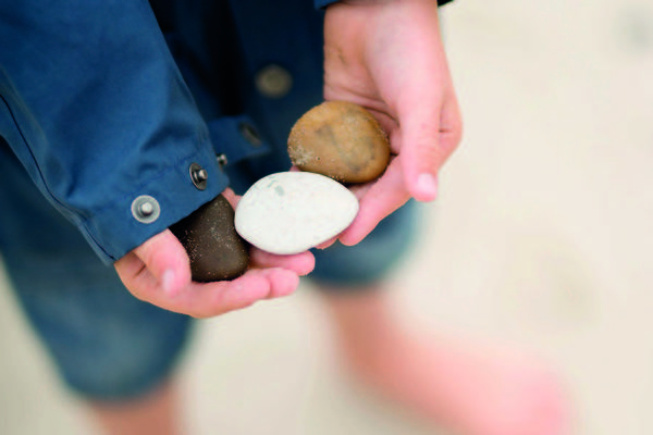 - Gå en tur og samle fine, små steiner i naturen. Prøv å finne steiner med forskjellige farger.