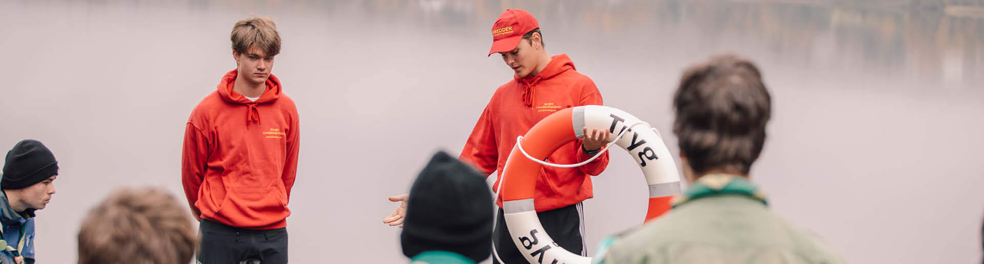 - Den som står på land øver på å kaste livline, livbøye eller noe annet langt ut til personen og redder personen i vannet inn til land.