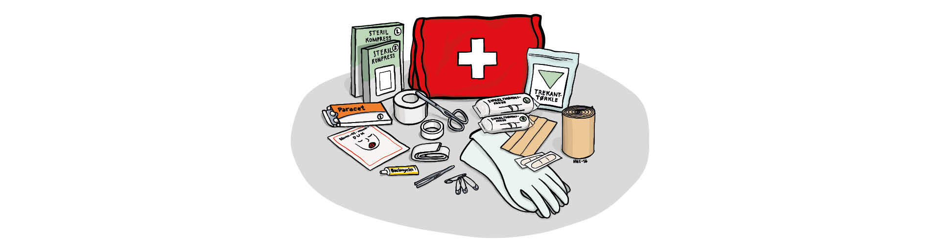 Når dere drar på tur med troppen eller patruljen, må dere alltid pakke med minimum ett førstehjelpssett. Små og større uhell kan skje i løpet av turen. og da må dere være beredt. Hva som bær være i førstehjelpssettet vil variere etter hvilken tur eller leir dere skal på, hvilken årstid det er og personlige preferanser.