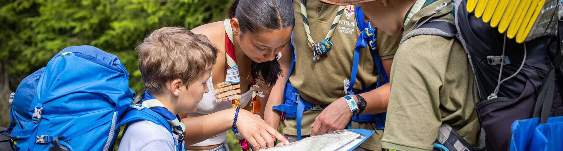 - Legg kompasset slik at det peker rett fra krysset mot et punkt dere skal gå til. Marsjpila skal peke den veien du skal.
